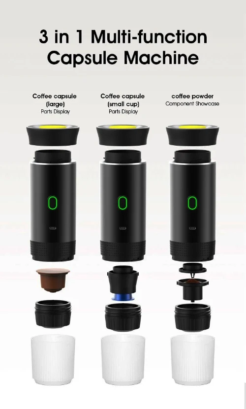 Coffee Machine Wireless Electric Portable Espresso Coffee Machine Maker 3-In-1 Capsule Powder Travel Coffee Maker